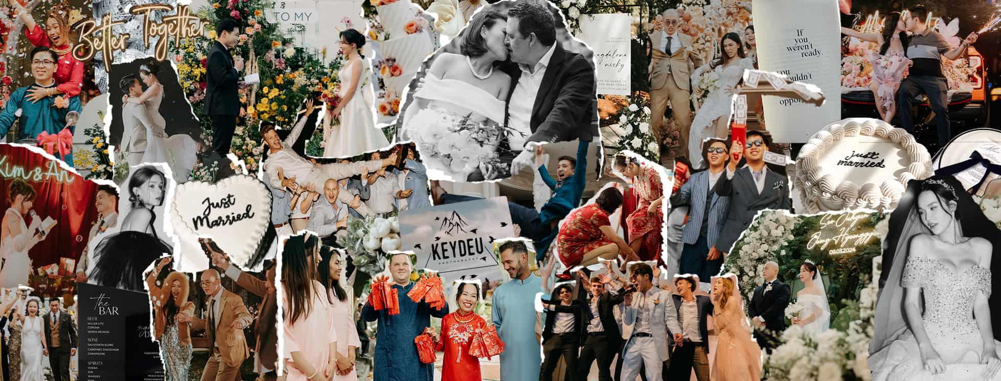 Vậy là làm việc với team được tròn 1 năm, trong chuỗi sự kiện quan trọng nhất đời mình – đám cưới. Từ ý định ban đầu chỉ cần 1 bộ ảnh đơn giản phông trắng đen chụp ở studio, rồi bỗng phát hiện ra anh Key do search thấy anh có chụp lookbook cho studio mình chọn, xong yêu cầu bên studio đích thân anh Key chụp. Studio báo lại anh chỉ chụp ngoại cảnh, thế là quyết định “chơi lớn” book một gói ngoại cảnh & phim trường chỉ vì 2 đứa quá mê màu ảnh của anh. Không làm 2 đứa thất vọng dù chỉ chụp prewed đơn giản loanh quanh Sài Gòn, thế là book hẳn 1 combo chụp từ lễ hỏi – lễ cưới – báo hỷ. Tụi mình gặp tổng cộng 5 người trong team, team gì mà ai cũng nhiệt tình bể bình luôn á. Nếu có 2 ekip cần được đầu tư nhất cho đám cưới thì đó chính là ekip Makeup và Chụp hình, và mình cảm thấy may mắn vì đã tìm được team Keydeu. Cảm ơn team vì đã giữ lại những khoảnh khắc nhiều likes nhất trên facebook của mình, đã làm hài lòng một đứa khó tính như mình lẫn gia đình mình, đã làm trọn vẹn công việc một cách nhiệt tình và chuyên nghiệp như vậy, nên cô dâu chỉ cần lo cười thôi là đủ ![]()